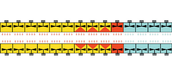 • RPMs of fan motor are adjustable via frequency converters